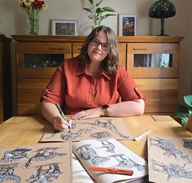 MY NAME IS PIA, AND MY ARTISTIC JOURNEY BEGAN IN MY YOUTH, WHEN I FIRST IMMERSED MYSELF INTENSIVELY IN PAINTING AND DRAWING. IN 2010, MY FOCUS SHIFTED PARTICULARLY TOWARD DRAWING AND GRAPHIC ART, WHICH LED ME TO PURSUE SELF-DIRECTED STUDIES IN THESE AREAS. FROM 2011 TO 2012, I ATTENDED A PAINTING COURSE TO GAIN PRACTICAL EXPERIENCE WITH VARIOUS TECHNIQUES, CONCENTRATING PRIMARILY ON WATERCOLOR. OVER TIME, MY INTEREST IN ACRYLIC PAINTING ALSO GREW, GRADUALLY EXPANDING THE RANGE OF MEDIA AND STYLES I EXPLORED.